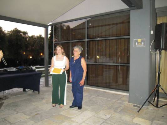 Απονομή του βραβείου "Χαράλαμπου Τσιμά" στην Ζωή Διαμαντή φοιτήτρια του Παιδαγωγικού Τμήματος του Παν/μίου Θεσσαλίας, από την κα Ελένη Τσιμά, σύζυγο του ευεργέτη Χαράλαμπου Τσιμά.