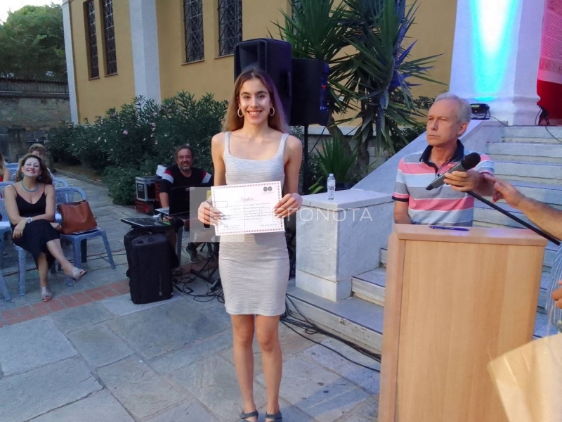 Βραβείο Δημήτρη Χ. Ηλιόπουλου "Μαρία Ζουπανιωτη" στην Φιλάνθη-Φωτεινή Κυπαρισσοπούλου, πρωτοετή φοιτήτρια στην Ιατρική Σχολή του Πανεπιστημίου Αθηνών